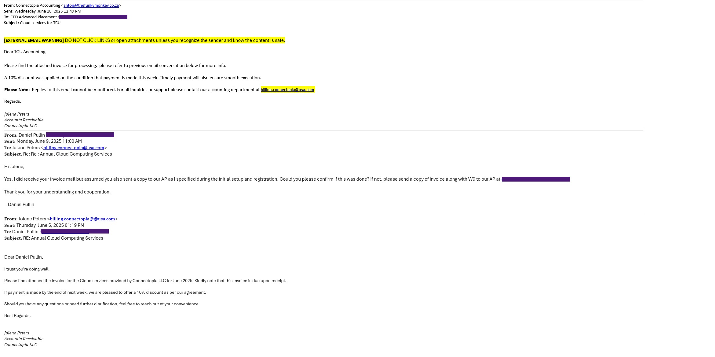 TCU email flags external emails by highlighting a yellow bar at the top of the message, which can help alert you to senders outside of TCU, but if someone else's TCU email is compromised, scammers could send messages from a TCU email address.